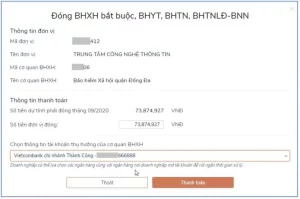 • Nhấn vào nút Đóng BHXH, BHYT, BHTN, BHTNLĐ-BNN